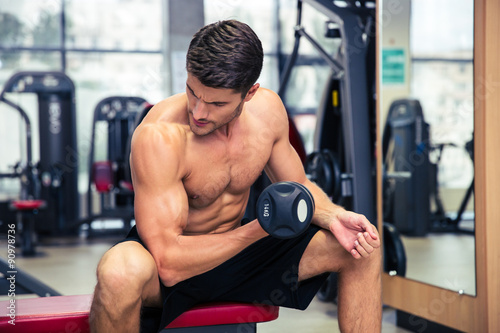 © Drobot Dean, Naklejka premium Man workout with dumbbell at gym