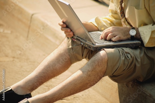 Obraz premium Man Works On Computer