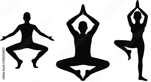 © Deecurve, Fototapeta premium Man yoga vector silhouettes