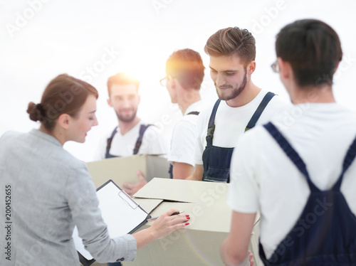 Fototapeta premium Manager and movers isolated on white background.