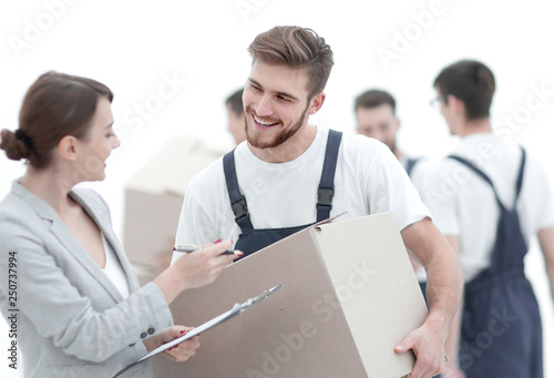Fototapeta premium Manager and movers isolated on white background.