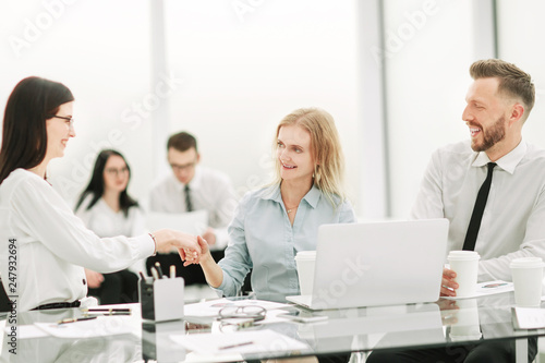 © yurolaitsalbert, Obraz premium Manager shaking hands with client at office meeting