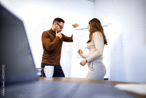 Fototapeta premium Managers having a business meeting and analyzing sales results in conference room.