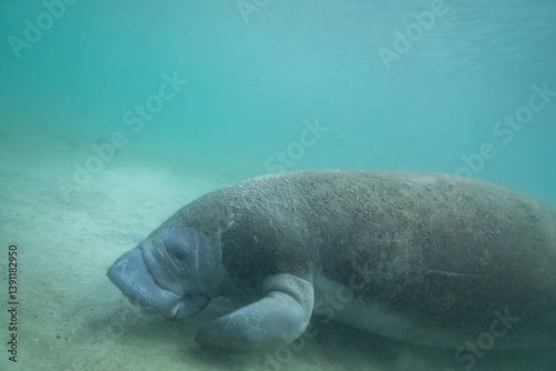 © Griffin, Naklejka premium Manatee foraging in bottom of spring