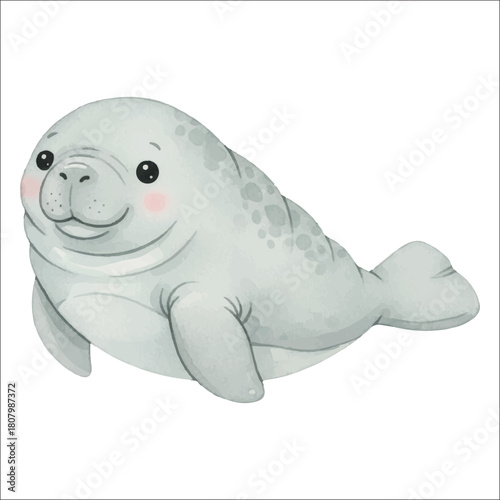 © Mae, Obraz premium Manatee Watercolor Vector Isolated on White Background