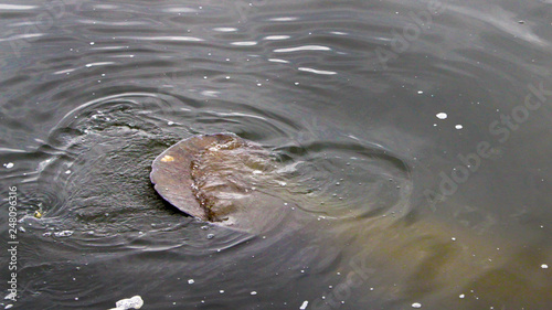Obraz premium Manatees tail swimming on top in a river in Florida