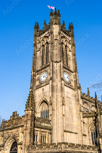 © PhotoFires, Obraz premium Manchester, Lancashire, England, UK - Tower of the cathedral of Manchester; the Cathedral and Collegiate Church of St Mary, St Denys and St George