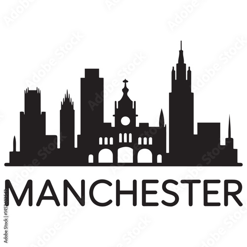 Fototapeta premium Manchester skyline Vector Black silhouettes. with white background