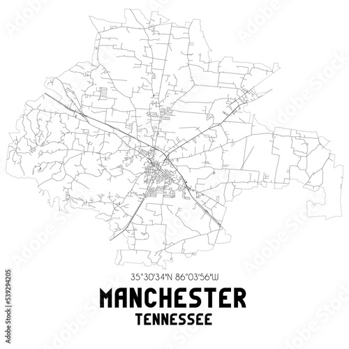 © Rezona, Obraz premium Manchester Tennessee. US street map with black and white lines.