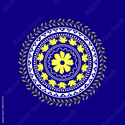 Naklejka premium Mandala Art, Pattern Design with leaves, pattern design with flower and leaves