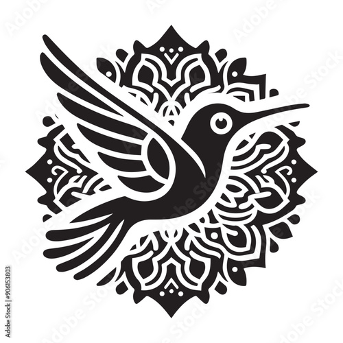 © Md Faysal Ahmed, Obraz premium Mandala bird illustration with intricate black and white design