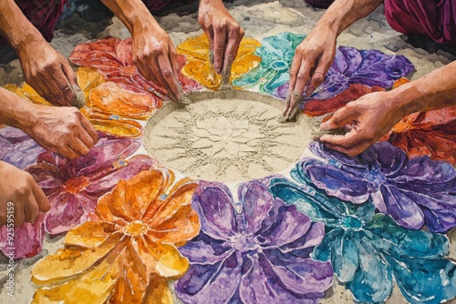 © Sidewaypics, Fototapeta premium Mandala Sands of Time Buddhism, Hinduism Religion Spiritual Symbol