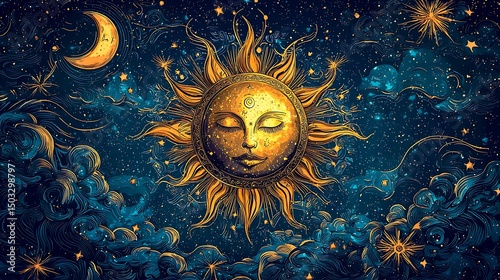 © Subir, Fototapeta premium Mandala style celestial sun moon illustration high resolution picture