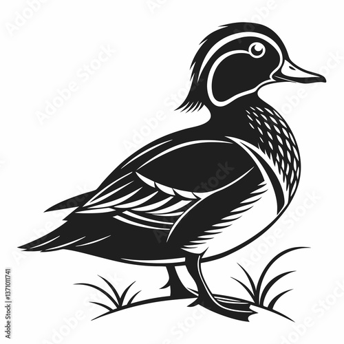 © MK, Naklejka premium Mandarin duck black silhouette icon vector