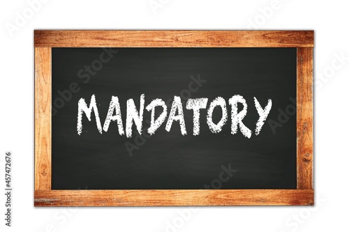 Fototapeta premium MANDATORY text written on wooden frame school blackboard.