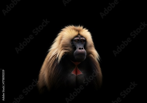 © Feysa, Fototapeta premium Mandrill portrait against dark background