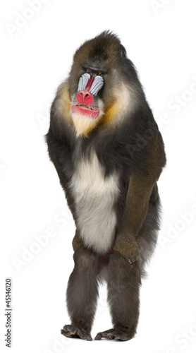 Obraz premium Mandrill standing, Mandrillus sphinx, 22 years old