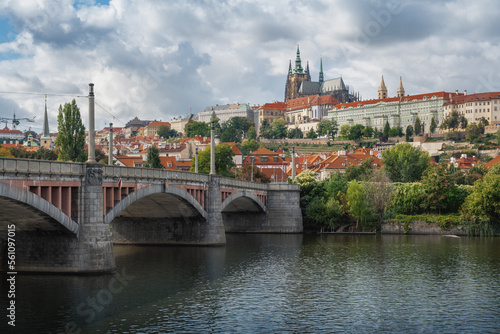 Fototapeta premium Manes Bridge and Vltava River with Prague Castle Skyline - Prague, Czech...