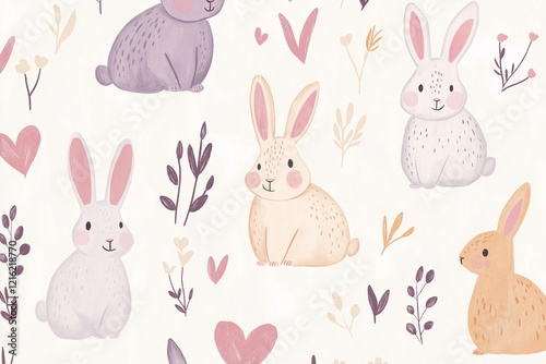 © SHIHO, Fototapeta premium イースター, ウサちゃん, ウサちゃん, manga, 動物, ベクター, イラスト, 野ウサギ, かわいい, ひとそろい, とぶ, 休日, 模様, 赤ちゃん, 楽しい, ピンク, デザイン, 卵, 幸せな, 文科系, シームレス, おかしな, お気に入りの, 哺乳動物, カード