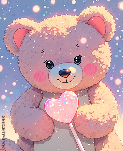 Obraz premium クマ, テディ, おもちゃ, manga, 動物, 愛, ベクター, イラスト, ハート, テディベア, 赤ちゃん, バレンタイン, 文科系, 楽しい,...