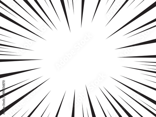 © cnh, Fototapeta premium Manga comic explosion, motion or movement effect, vector background. Manga anime cartoon radial speed lines and abstract pattern for comic book burst, flash ray or explode bang action