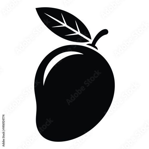 Fototapeta premium Mango Silhouette, Vector, Icon, Logo, White Background.