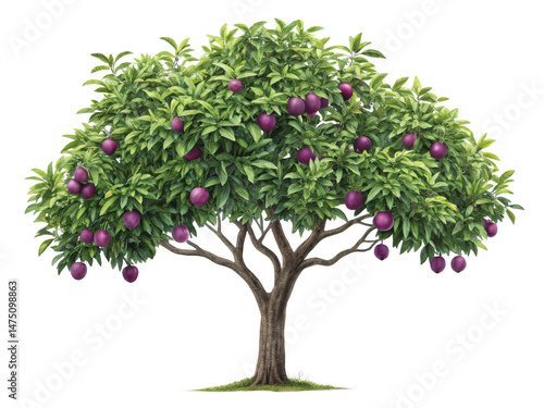 © Ronaldo, Naklejka premium Mangosteen tree png exotic fruit tree png purple fruit png tropical plant png white background image