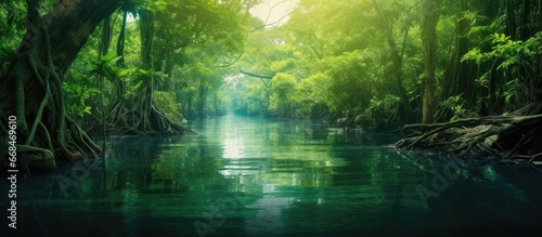 Fototapeta premium Mangrove forest in tropical coastal swamps with flooded areas