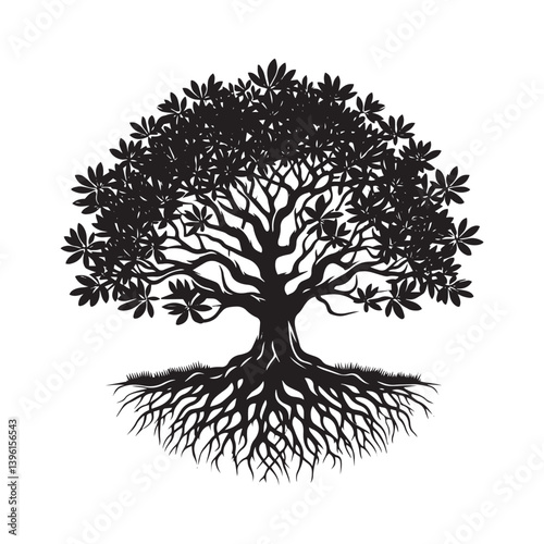 Naklejka premium Mangrove Tree Vector Silhouette, Coastal Nature Tree Outline, Unique Root...