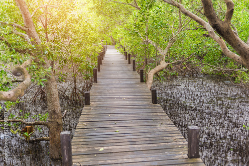 Obraz premium Mangroves inTung Prong Thong or Golden Mangrove Field at Estuary Pra Sae, Rayong, Thailand