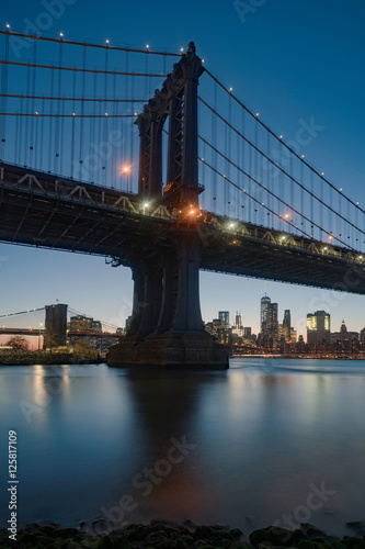 Obraz premium Manhattan and Brooklyn Bridges and skyline, New York, USA
