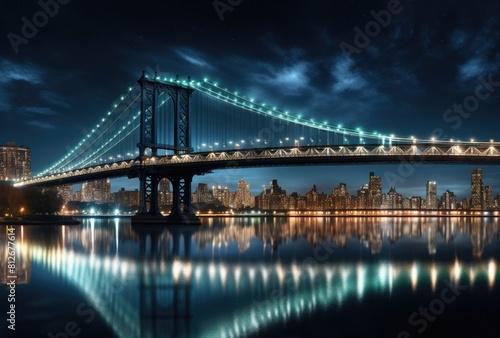 Fototapeta premium Manhattan Bridge and Manhattan skyline at night, New York City.