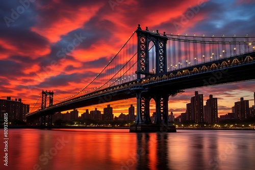 © Md Mojammel, Fototapeta premium Manhattan Bridge at sunset, New York City, United States.
