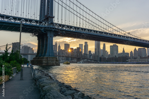 © Massimo, Naklejka premium Manhattan Bridge at Sunset, New York, Usa