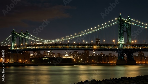 © claudunia, Fototapeta premium Manhattan Bridge lights at night.