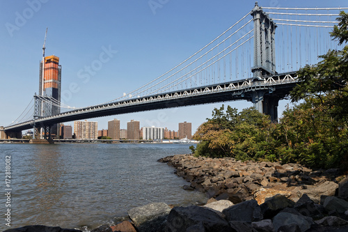 Obraz premium Manhattan Bridge sur l'East River depuis le Parc du Pont de Brooklyn