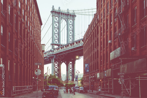 Obraz premium Manhattan Bridge widziany z Dumbo, Brooklyn, Nowy Jork, USA.