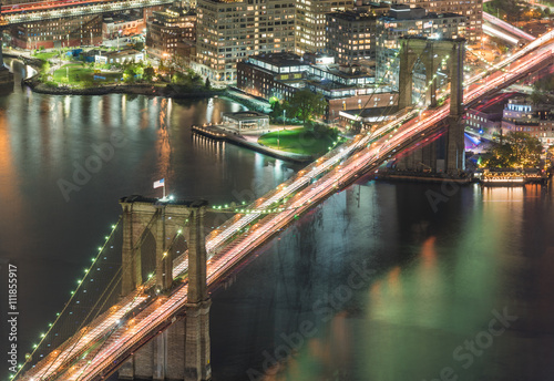 Naklejka premium Manhattan, Brooklyn Bridge widok z lotu ptaka