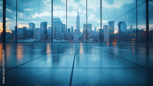 © guolin, Fototapeta premium Manhattan, Dubai, Shanghai, and Hong Kong City Centers with Platforms, Roads, Parking Lots, and Brick Pavements for Car Advertisement Background
