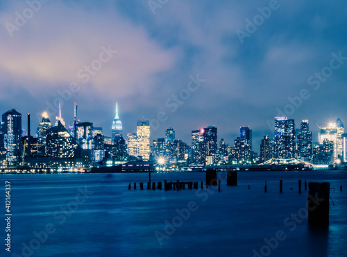 Obraz premium Manhattan Skyline At Night From Jacobs Pier, NJ