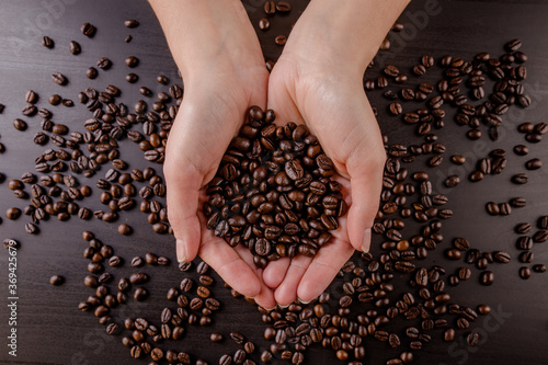 Obraz premium Mani che sorreggono dei chicchi di caffè appena tostati