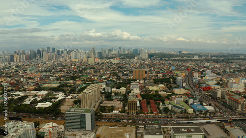 © Alex Traveler, Obraz premium Manila city with skyscrapers, modern buildings and Makati business center, aerial drone. Travel vacation concept.