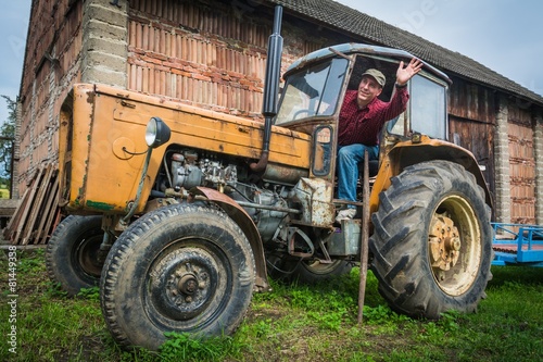 © Andrea, Obraz premium Mann auf einem alten Trecker