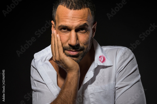 © Aggi Schmid, Fototapeta premium Mann mit Lippenstift am Hemd, verliebt