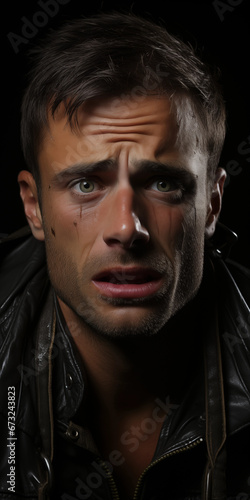 © www.freund-foto.de, Obraz premium Mann mit schweren Depressionen Porträt Hochformat, ai generativ