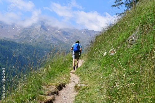 Fototapeta premium Mann wandert im Schnalstal in Südtirol