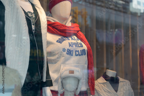 Fototapeta premium mannequins inside display window of Roots, a clothing store, located here at...