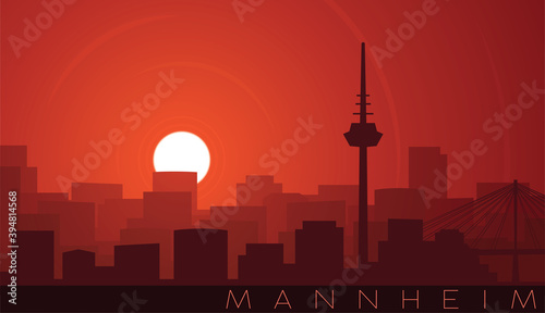 © pabloprat, Obraz premium Mannheim Low Sun Skyline Scene
