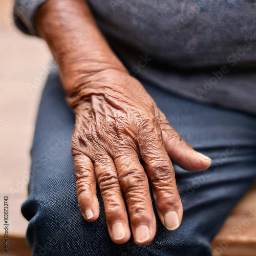 © ClaudioArnese, Fototapeta premium Mano di una donna anziana con artrite