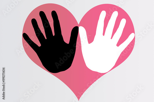 © Gabrieuskal, Obraz premium Manos negras y blancas con corazón rojo.